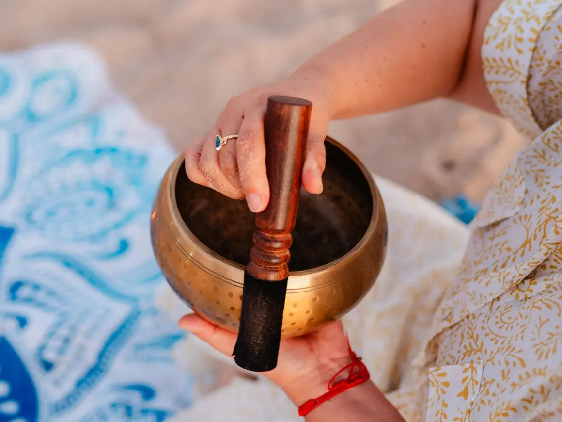Uso de cuencos y vibraciones sonoras para armonizar tu frecuencia, reducir el estrés y promover un estado de paz y claridad mental.